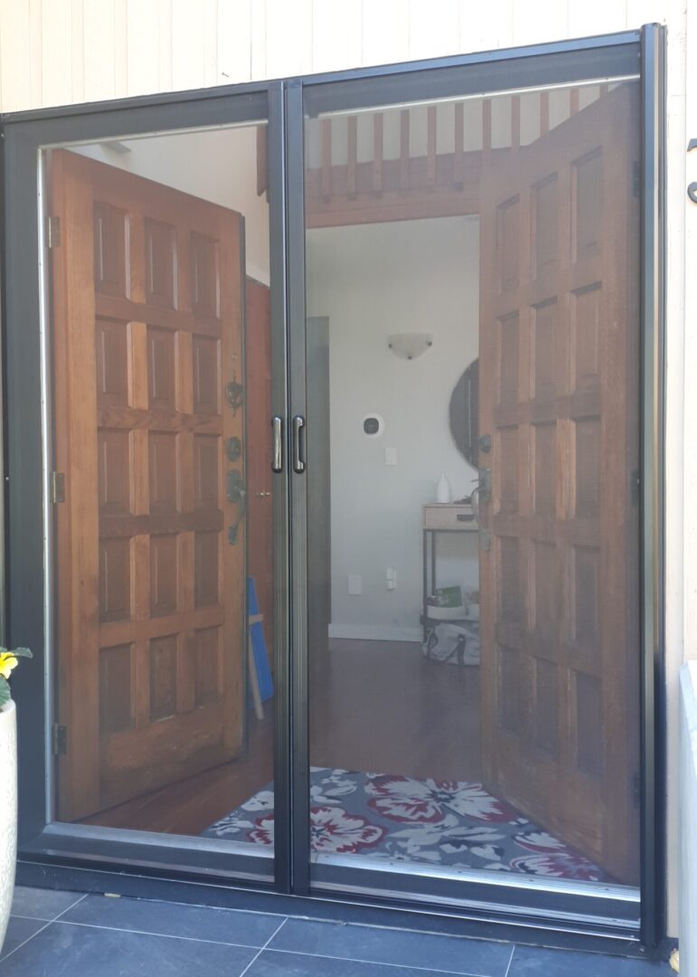 The Mirage 1750 model retractable screen for double doorways is a popular and economical solution for doorways with no screen protection. These retractable screen doors are all custom made and can fit virtually any type of door opening in your home (up to 98" height by 72" width ), including double entrance doors, French doors, and double sliding glass doors. Once professionally installed, these screen doors are virtually maintenance-free,with a can of silcone track lubricant nearby to keep parts moving freely (included free with door purchase at Lumasso Industries). Mirage retractable screens come in 8 standard frame color options, plus premium powder coat extrusion colors that are also available for that hard-to-find custom look to match your home's decor. The highly durable Phifer brand screen mesh comes in charcoal color for the clearest view through the screen doors. The easy-grip plastic handles are made of durable plastic, and the closure system is a super magnet latch system. These screen doors come with a full limited lifetime warranty.